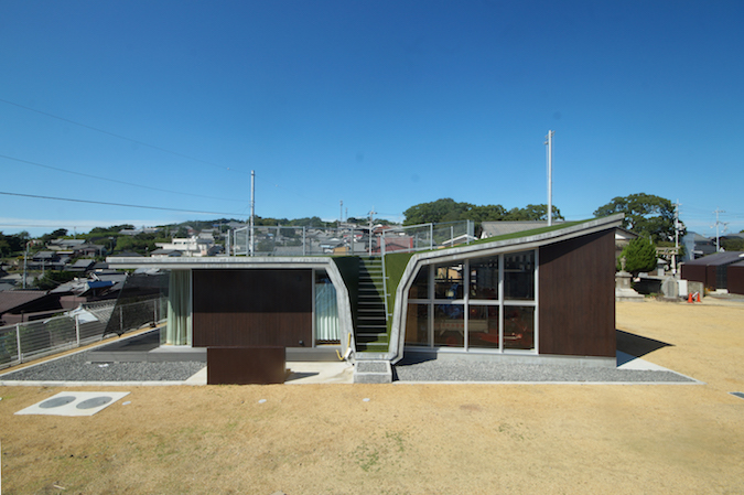A fire station and disaster prevention center built on Ibuki-jima Island, a remote island in the Seto Inner Sea of Japan.